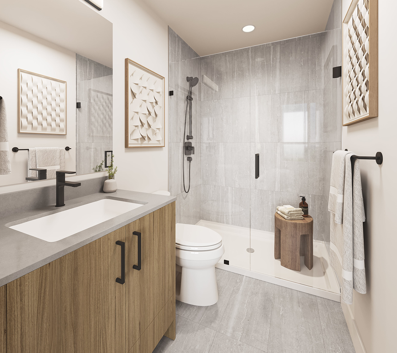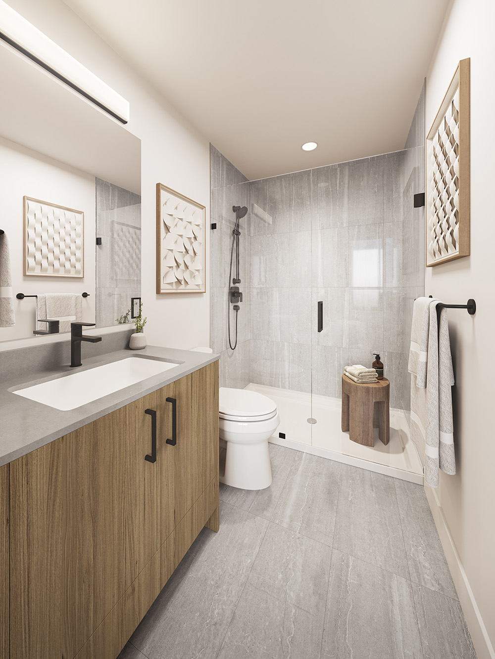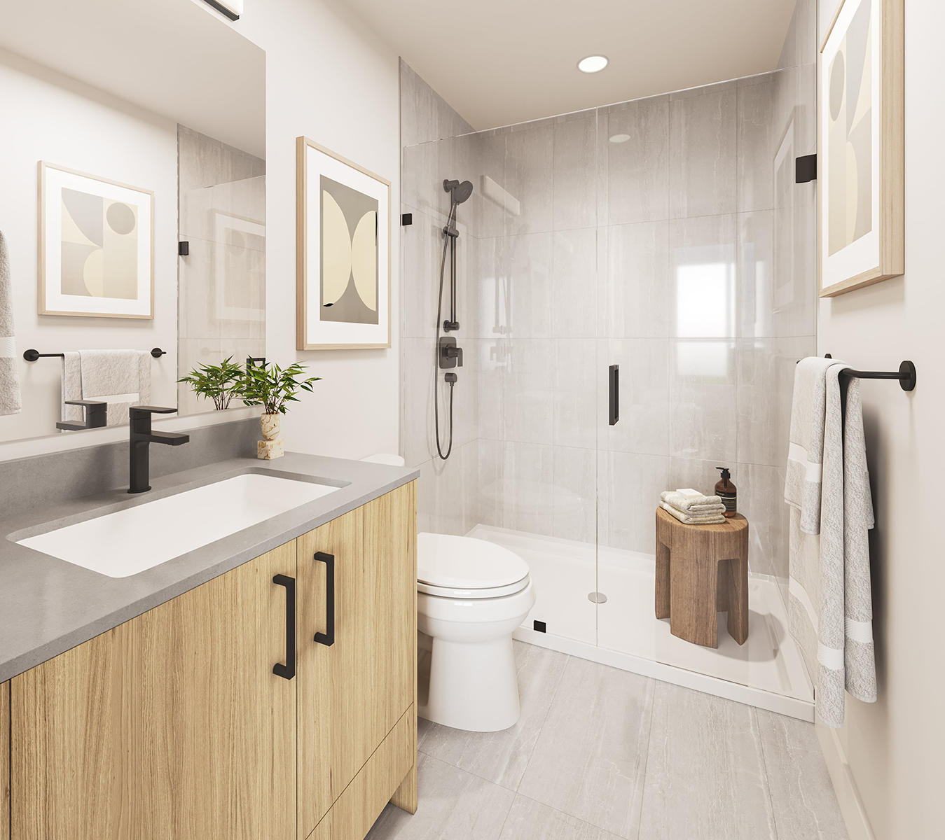 Experience a spa-like sensation in the bathrooms with elegant frameless glass showers, offering a sleek and contemporary appearance.