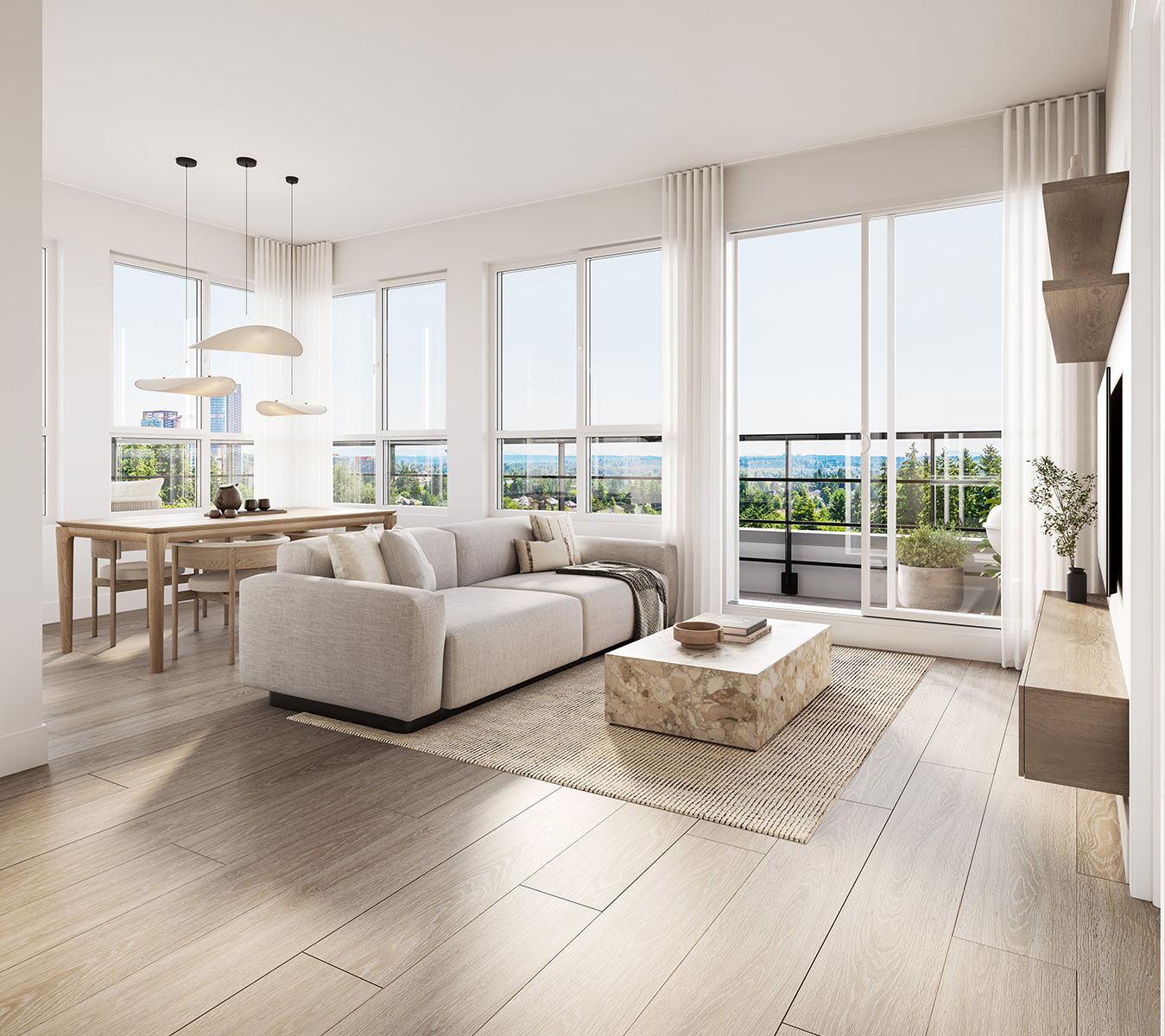Enjoy the beauty and practicality of 8" wide plank luxury vinyl flooring throughout the living areas providing a durable and low maintenance surface that replicates the look of hardwood.